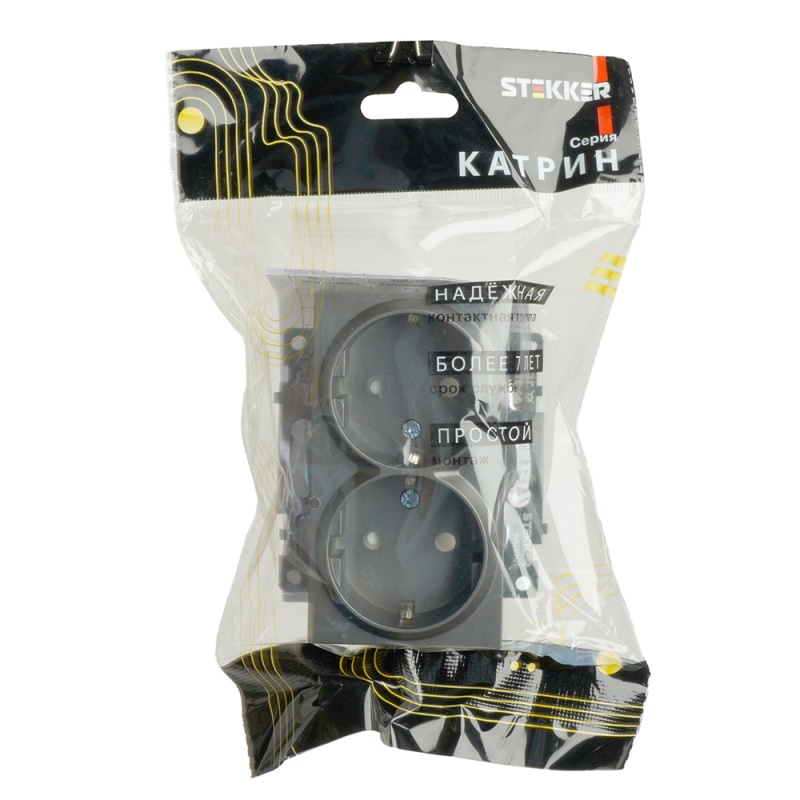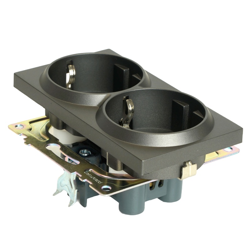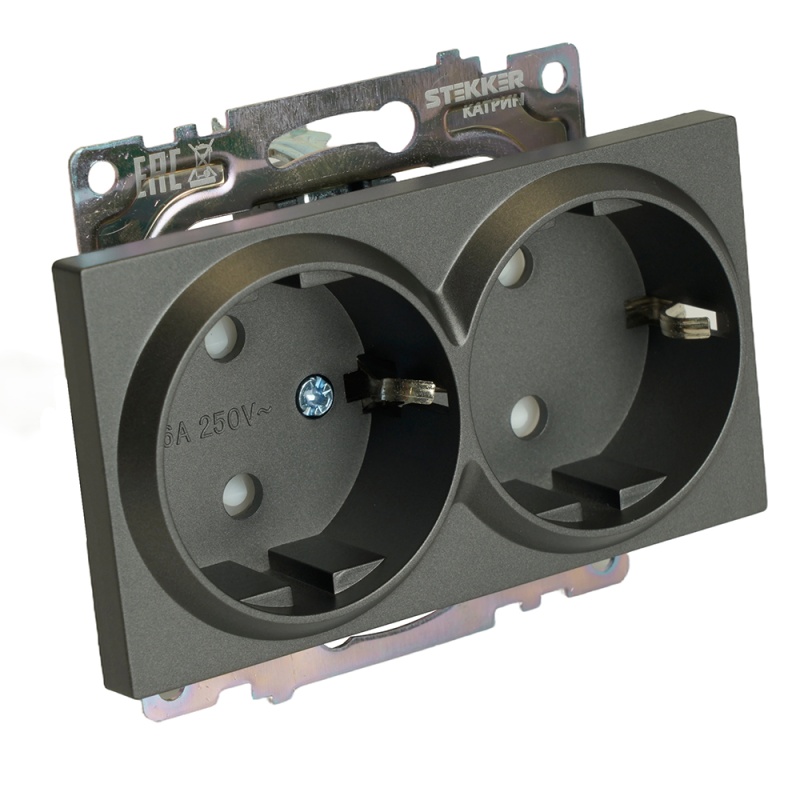Отзывы о Розетка 2-местная с защитной шторкой (механизм) с/з, 250В, 16А, серия Катрин, графит, GLS16-7114-06