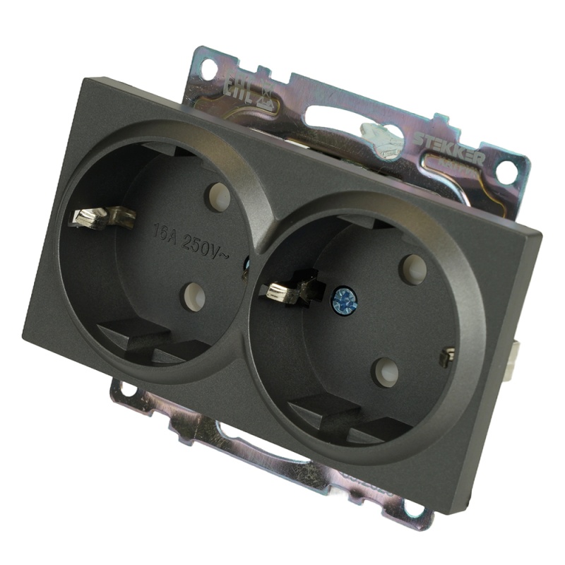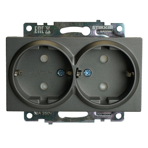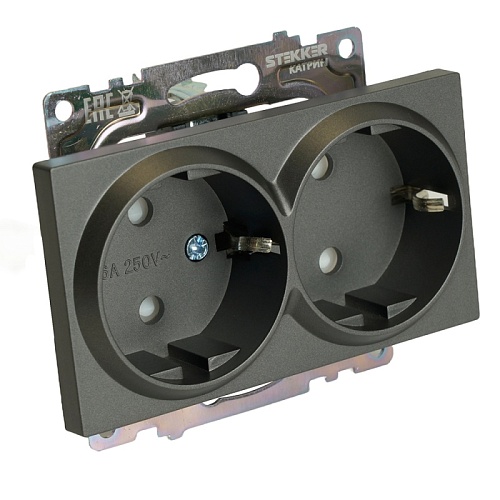 Розетка 2-местная с защитной шторкой (механизм) с/з, 250В, 16А, серия Катрин, графит, GLS16-7114-06