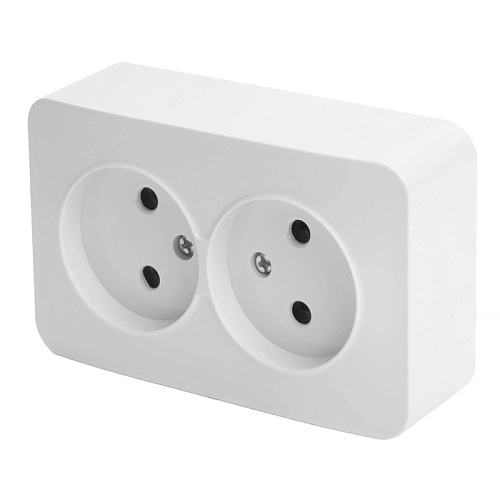 Розетка 2-местная б/з открытой установки, STEKKER, 250В, 10А, IP20, серия София, белый, MST10-12-01