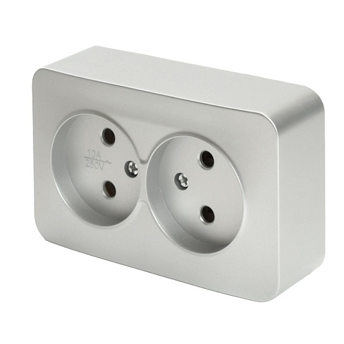 Розетка 2-местная б/з открытой установки, STEKKER, 250В, 10А, IP20, серия София, серебро, MST10-12-03