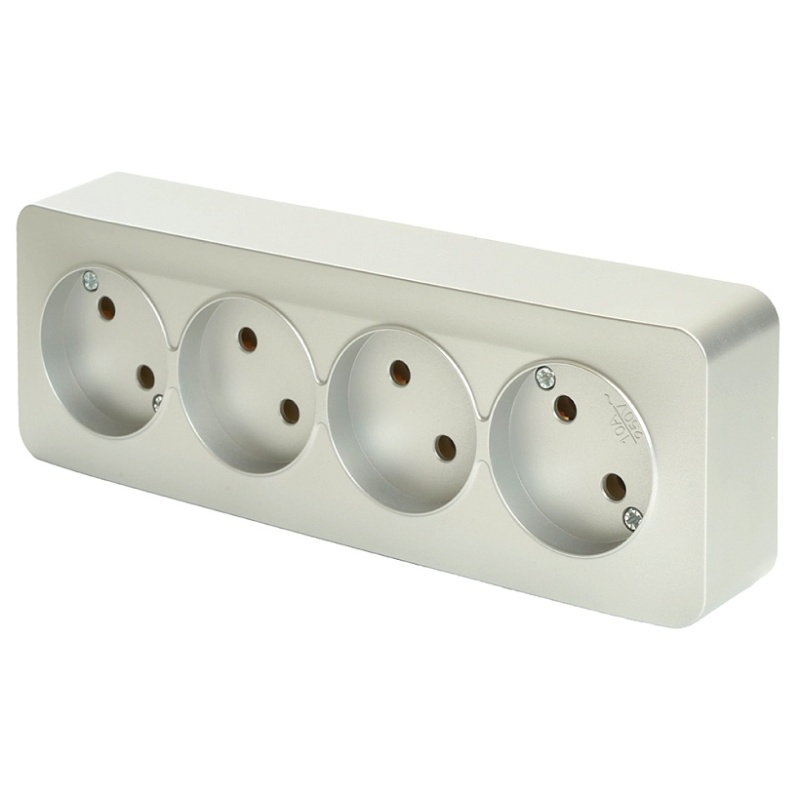 Розетка 4-местная б/з открытой установки, STEKKER, 250В, 10А, IP20, серия София, серебро, MST10-14-03