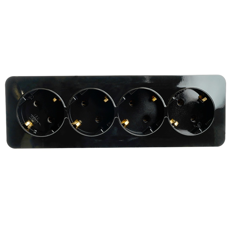 Розетка 4-местная с/з открытой установки, STEKKER, 250В, 16А, IP20, серия София, черный, MST16-14-02