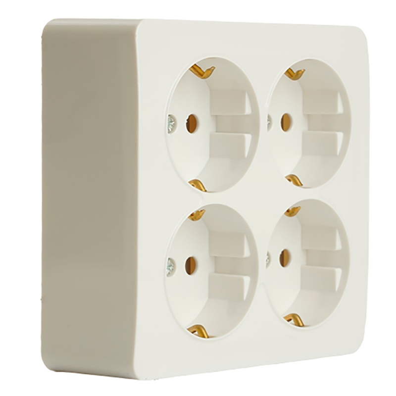 Розетка 4-местная с/з открытой установки, квадрат, STEKKER, 250В, 16А, IP20, серия София, белый, MST16-14S-01