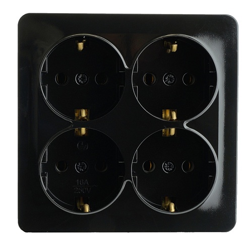 Характеристики Розетка 4-местная с/з открытой установки, квадрат, STEKKER, 250В, 16А, IP20, серия София, черный, MST16-14S-02