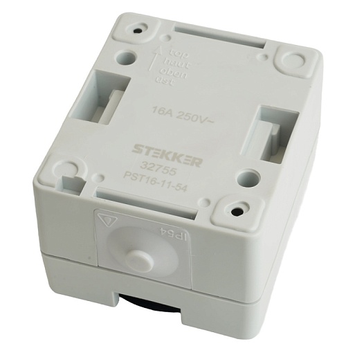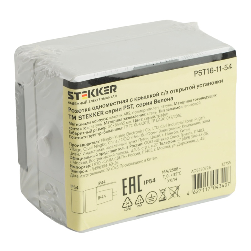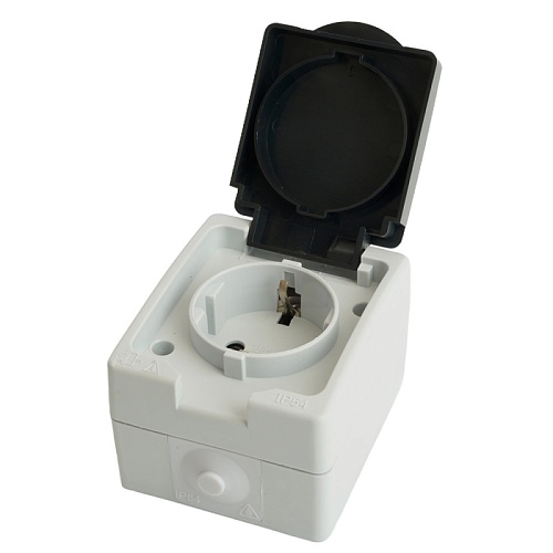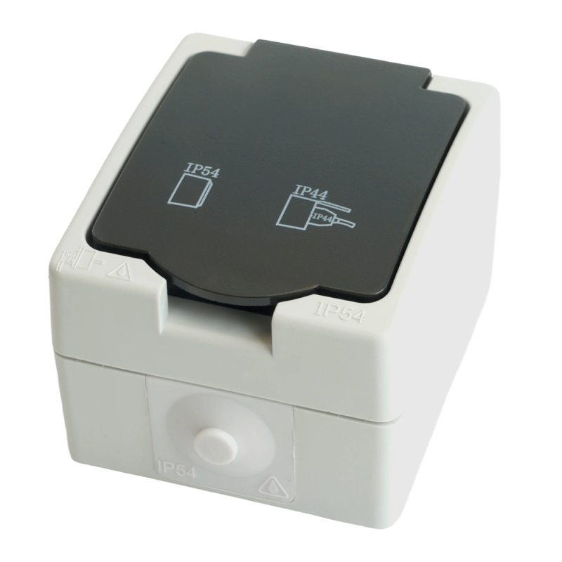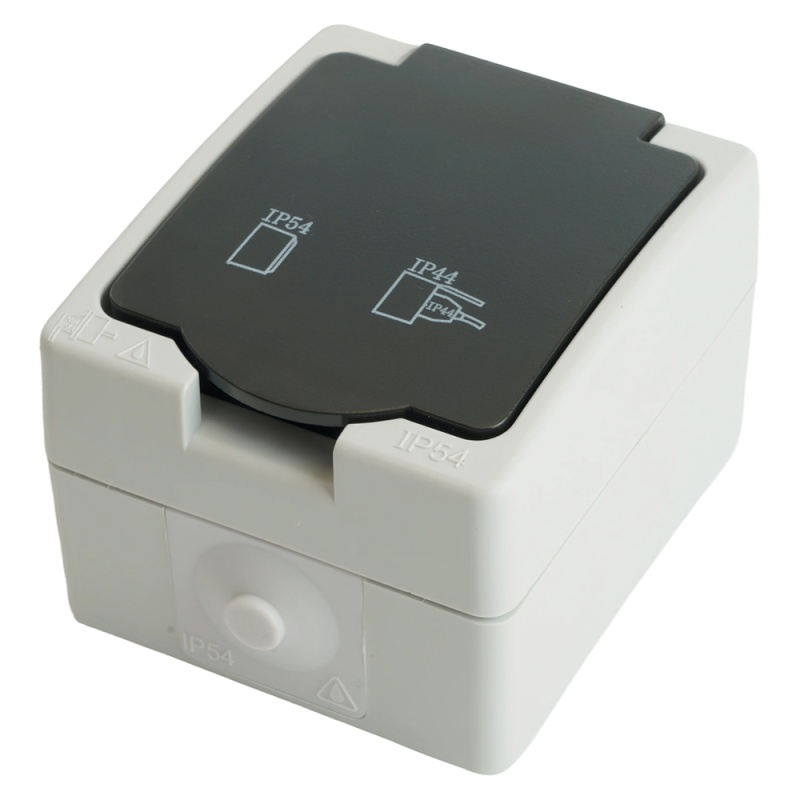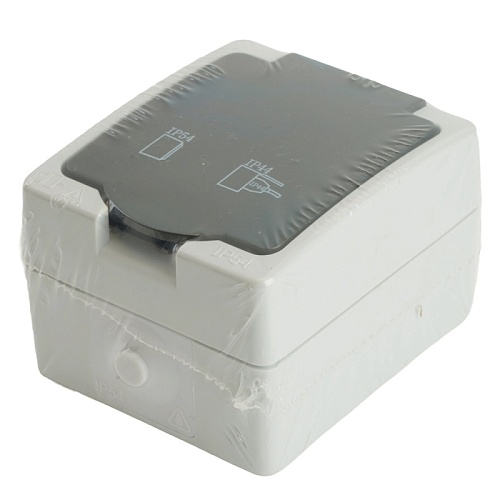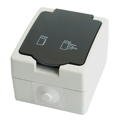 Характеристики Розетка 1-местная с крышкой с/з STEKKER, PST16-11-54, пластик АВS, 250В, 16А, IP54, серый/графит