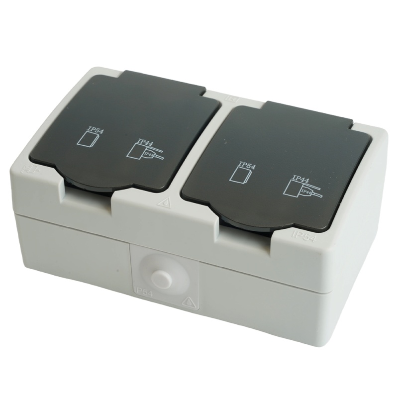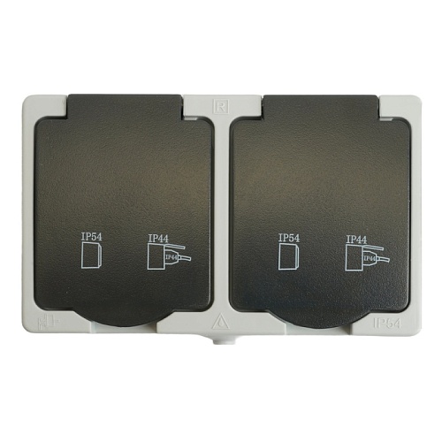 Розетка 2-местная с крышкой с/з STEKKER PST16-12-54, пластик АВS, 250В, 16А, IP54, серый/графит 32754