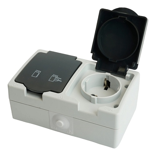 Отзывы о Розетка 2-местная с крышкой с/з STEKKER PST16-12-54, пластик АВS, 250В, 16А, IP54, серый/графит