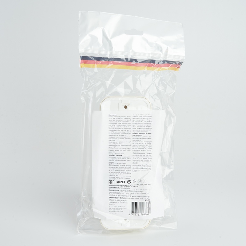 Характеристики Розетка 3-местная б/з STEKKER, PST16-50-20 (RA 16-344-БЖ), пластик АВС, 250В, 16А, IP20, слоновая кость