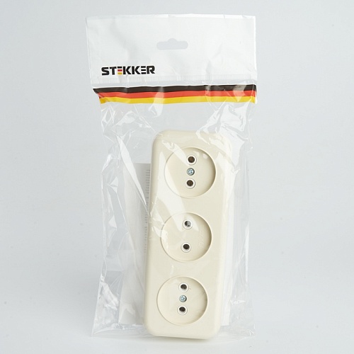 Отзывы о Розетка 3-местная б/з STEKKER, PST16-50-20 (RA 16-344-БЖ), пластик АВС, 250В, 16А, IP20, слоновая кость