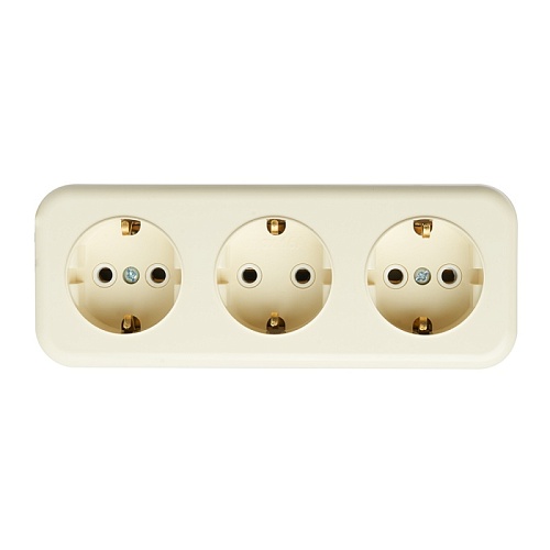 Розетка 3-местная с/з STEKKER, PST16-51-20 (RA 16-343-БЖ), пластик АВС, 250В, 16А, IP20, слоновая кость 49054