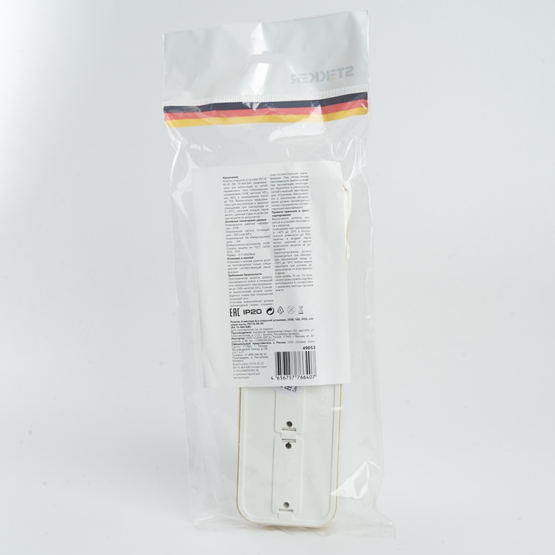 Розетка 4-местная б/з STEKKER, PST16-60-20 (RA 16-464-БЖ), пластик АВС, 250В, 16А, IP20, слоновая кость 49053
