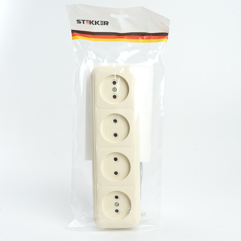 Розетка 4-местная б/з STEKKER, PST16-60-20 (RA 16-464-БЖ), пластик АВС, 250В, 16А, IP20, слоновая кость