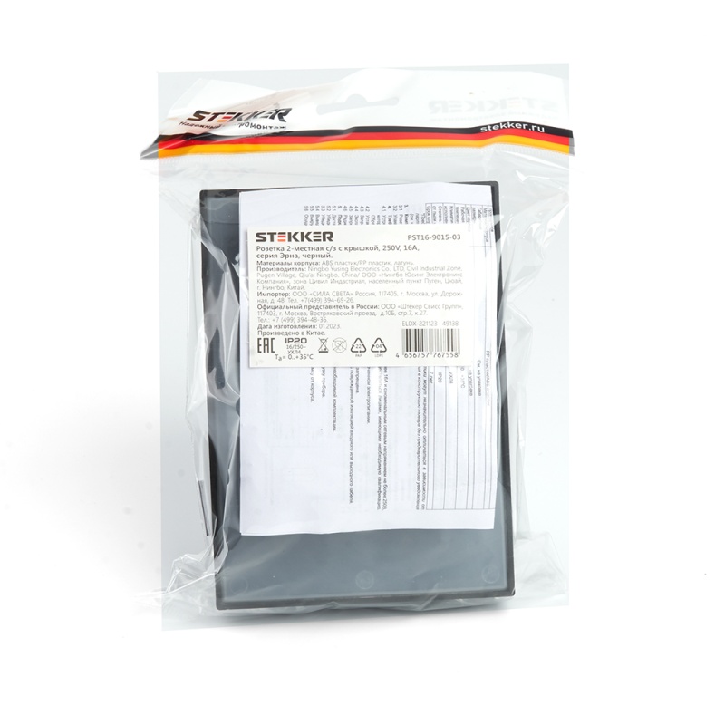 Отзывы о Розетка 2-местная с/з с крышкой, STEKKER, PST16-9015-03, 250В, 16А, серия Эрна, черный