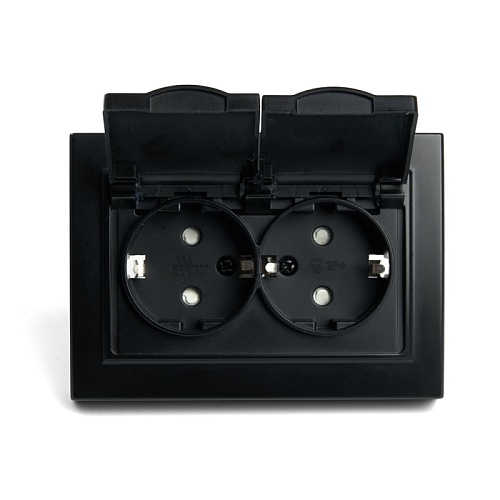 Розетка 2-местная с/з с крышкой, STEKKER, PST16-9015-03, 250В, 16А, серия Эрна, черный 49138