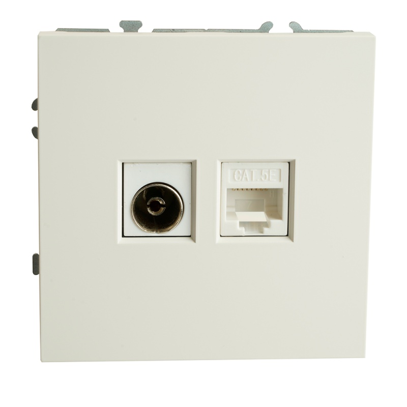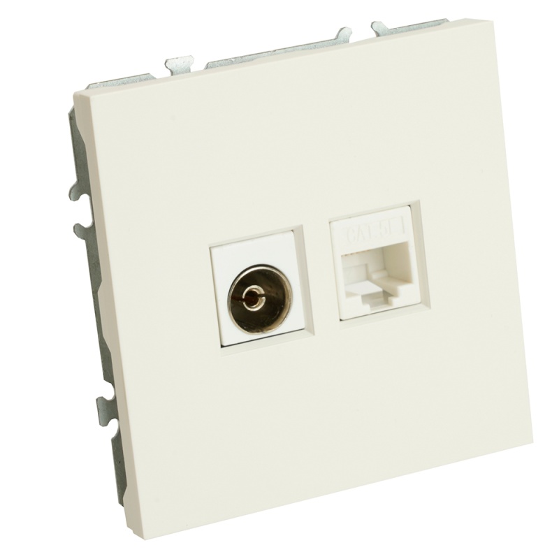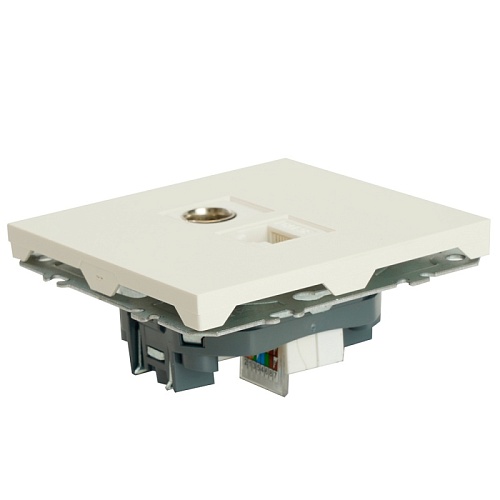 Характеристики Розетка TV + компьютерная RJ-45 (механизм), STEKKER, серия Эмили, RST00-5106-01, белый фарфор, soft touch
