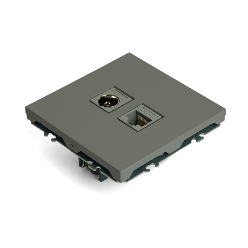 Розетка TV + компьютерная RJ-45 (механизм), STEKKER, серия Эмили, RST00-5106-10, платиново-серый, soft touch