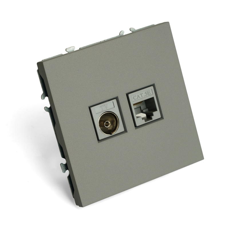 Розетка TV + компьютерная RJ-45 (механизм), STEKKER, серия Эмили, RST00-5106-10, платиново-серый, soft touch 49950