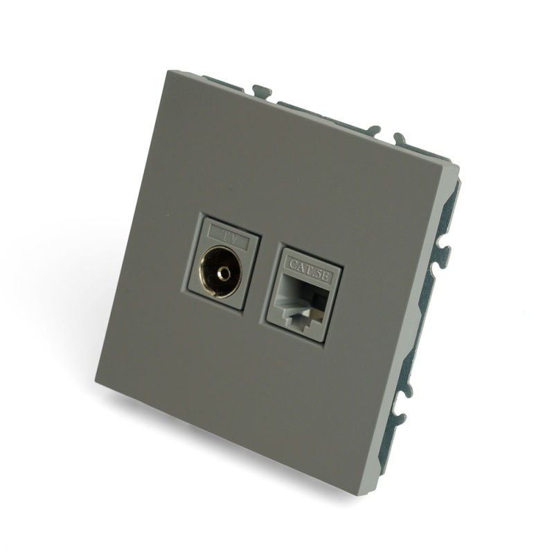Характеристики Розетка TV + компьютерная RJ-45 (механизм), STEKKER, серия Эмили, RST00-5106-10, платиново-серый, soft touch