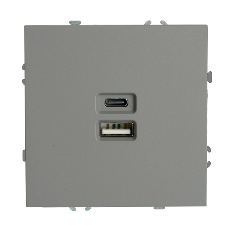 Розетка 2-местная USB + Type C (механизм), STEKKER, 250В, 20W, серия Эмили, RST10-5115-10, платиново-серый, soft touch