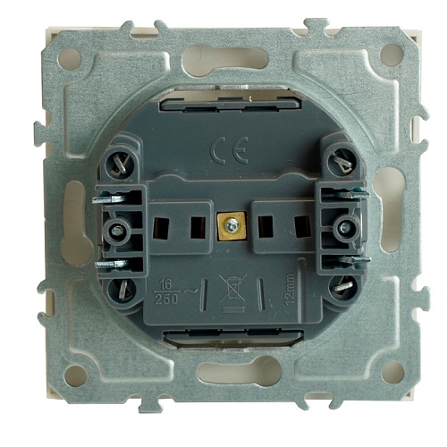 Характеристики Розетка 1-местная с защитной шторкой (механизм), STEKKER, б/з, 250В, 16А, серия Эмили, RST16-5109-01 , белый фарфор, soft touch