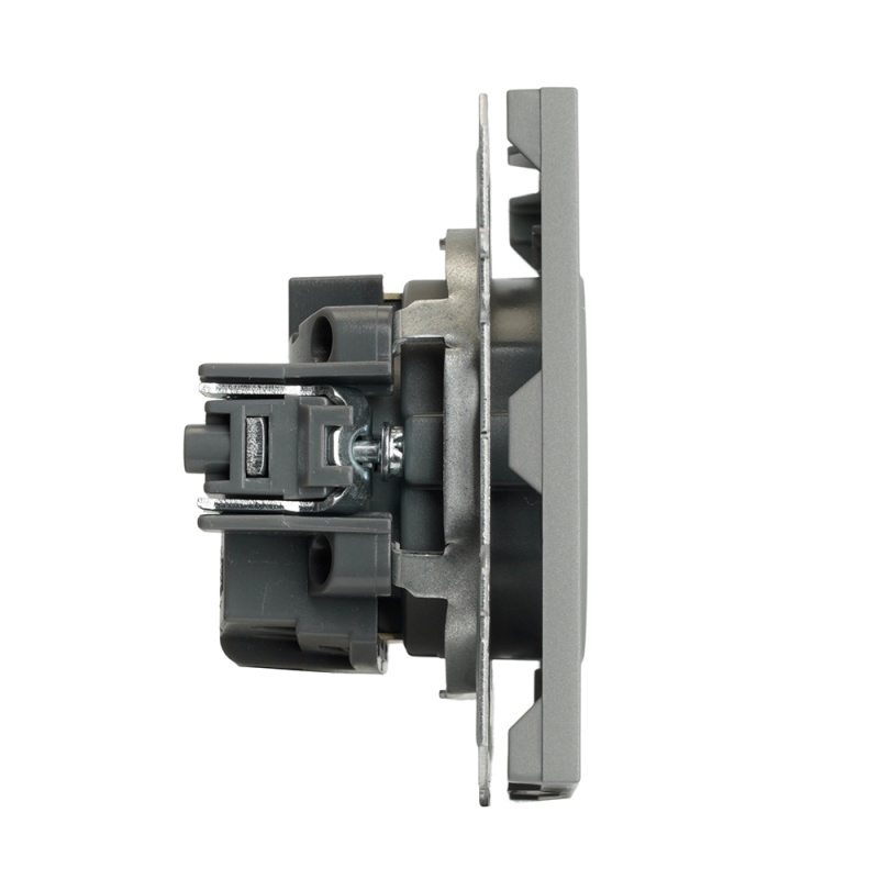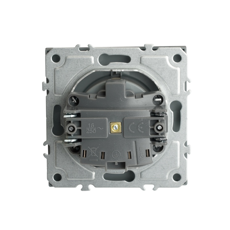 Характеристики Розетка 1-местная с защитной шторкой с/з (механизм), STEKKER, 250В, 16А, серия Эмили, RST16-5110-10, платиново-серый, soft touch