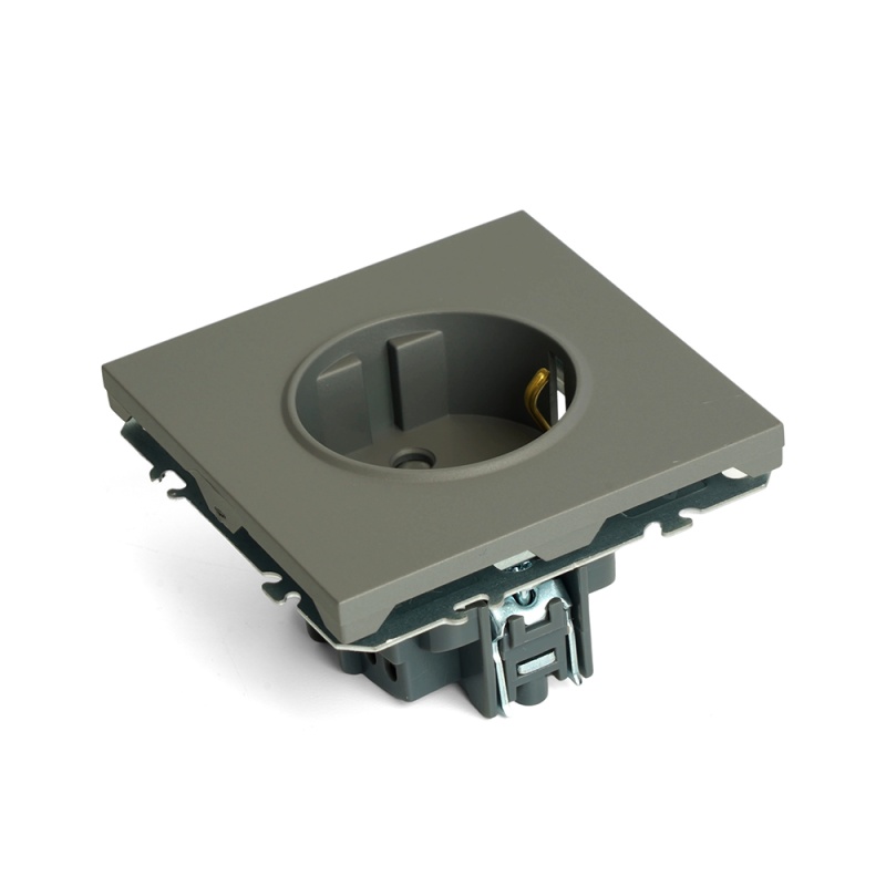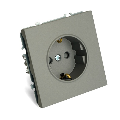 Розетка 1-местная с защитной шторкой с/з (механизм), STEKKER, 250В, 16А, серия Эмили, RST16-5110-10, платиново-серый, soft touch