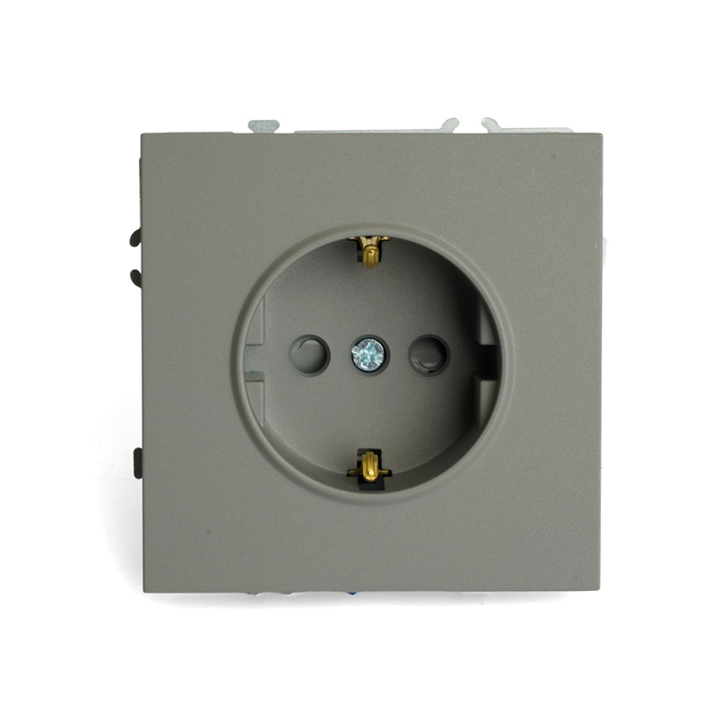 Розетка 1-местная с защитной шторкой с/з (механизм), STEKKER, 250В, 16А, серия Эмили, RST16-5110-10, платиново-серый, soft touch 49958
