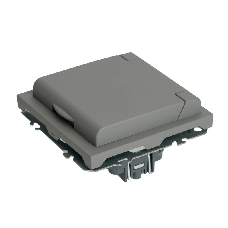 Отзывы о Розетка 1-местная с крышкой с защ. штор, STEKKER, б/з, 250В, 16А, серия Эмили, RST16-5113-10, платиново-серый, soft touch