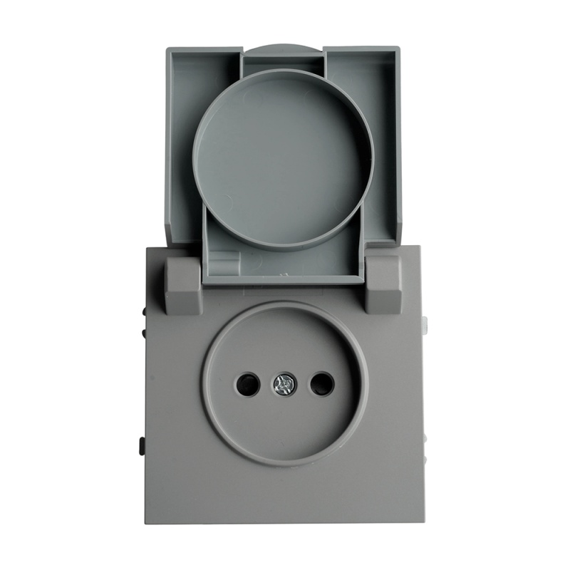 Розетка 1-местная с крышкой с защ. штор, STEKKER, б/з, 250В, 16А, серия Эмили, RST16-5113-10, платиново-серый, soft touch