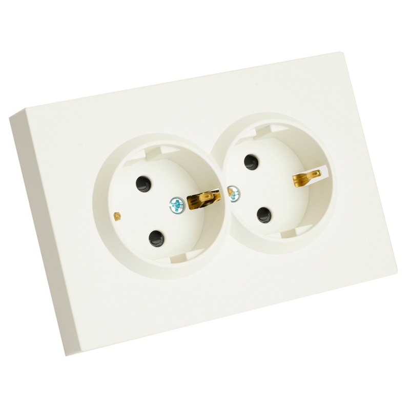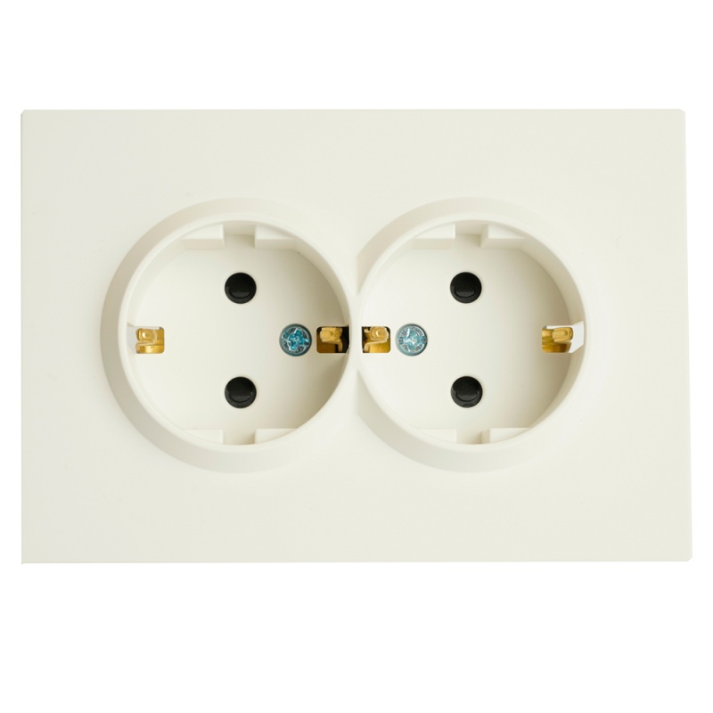 Розетка 2-местная с защитной шторкой, STEKKER, с/з, 250В, 16А, серия Эмили, RST16-5114-01, белый фарфор, soft touch