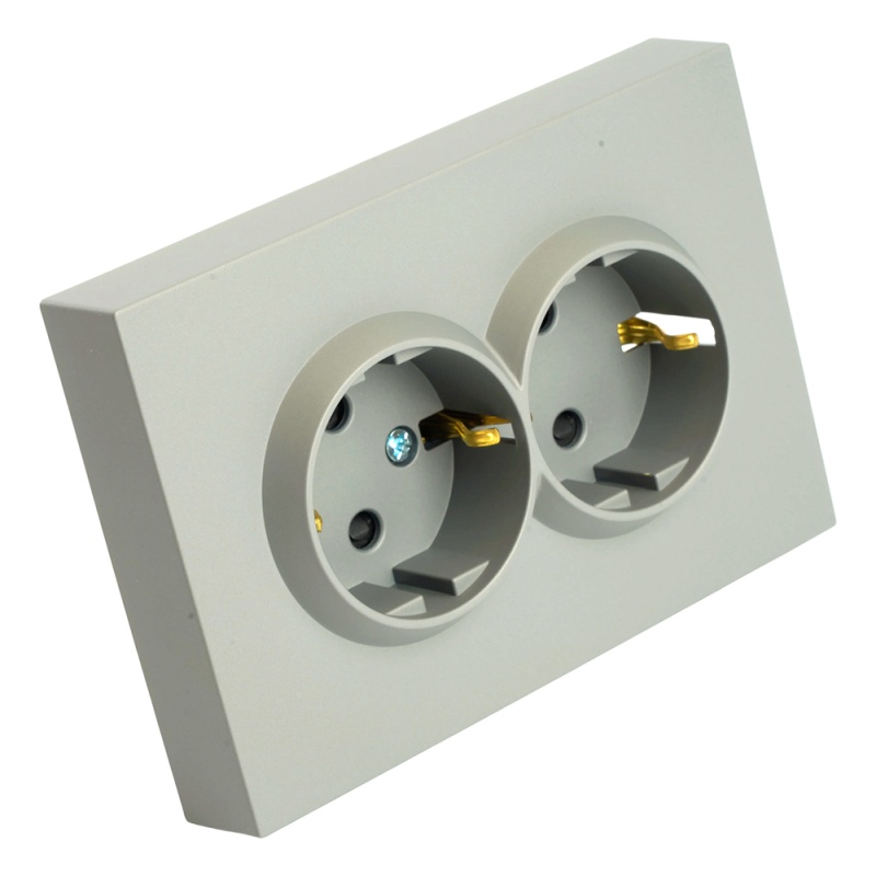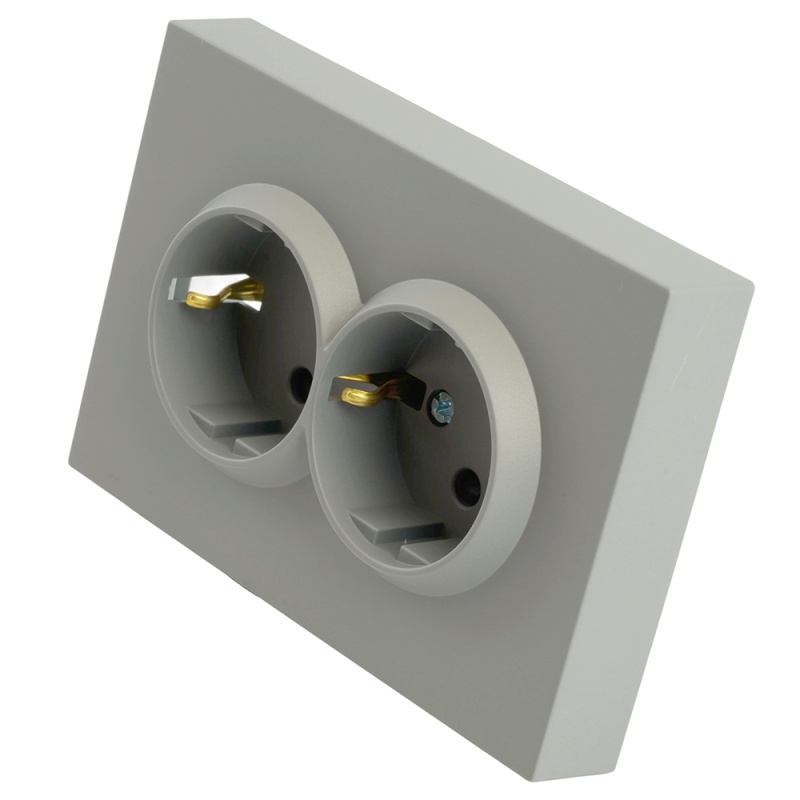 Отзывы о Розетка 2-местная с защитной шторкой, STEKKER, с/з, 250В, 16А, серия Эмили, RST16-5114-10, платиново-серый, soft touch