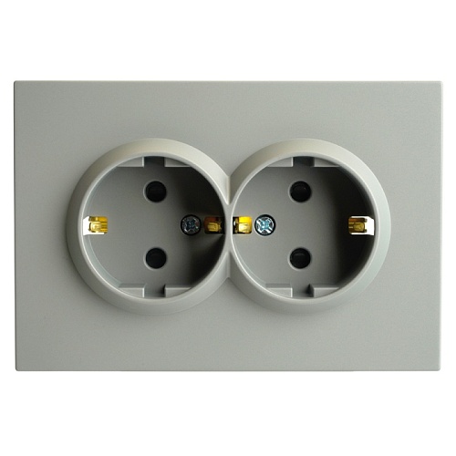 Розетка 2-местная с защитной шторкой, STEKKER, с/з, 250В, 16А, серия Эмили, RST16-5114-10, платиново-серый, soft touch