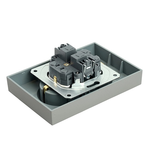 Розетка 2-местная с защитной шторкой, STEKKER, с/з, 250В, 16А, серия Эмили, RST16-5114-10, платиново-серый, soft touch 49960