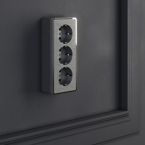Отзывы о Розетка тройная с заземлением и шторками Gallant графит рифленый WL15-02-05