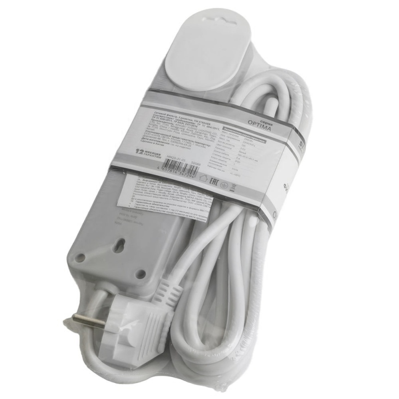Характеристики Сетевой фильтр 3-местный с/з STEKKER HM20-31-05 3x1мм2, 5 м, серия Optima, белый