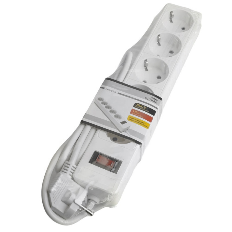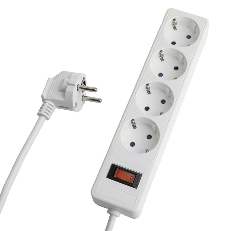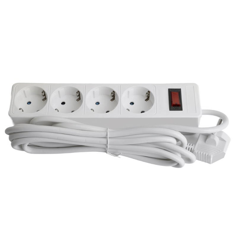 Сетевой фильтр 4-местный с/з STEKKER HM20-41-02 3x1мм2, 1,8 м, серия Optima, белый