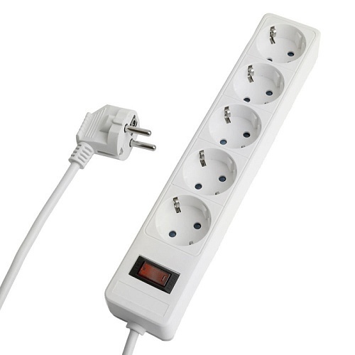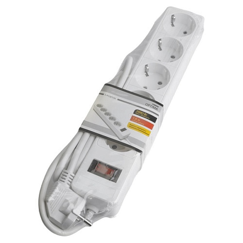 Сетевой фильтр 5-местный с/з STEKKER HM20-51-02 3x1мм2, 1,8 м, серия Optima, белый
