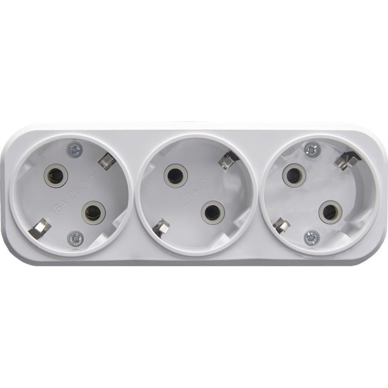 Разветвитель сетевой 3-местный с/з STEKKER ADP16-23-20, 250V, 16A, ABS пластик, белый