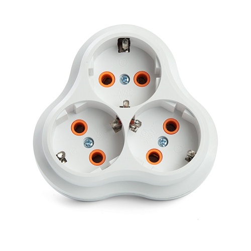 Разветвитель сетевой 3-местный с/з STEKKER ADP16-23-21, 250V, 16A, ABS пластик, белый