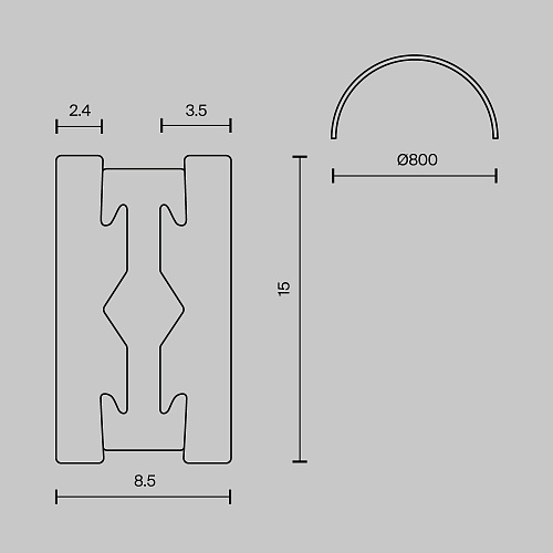 Характеристики Шинопровод полукруг 800 мм Technical TRX154-SR-D800-B