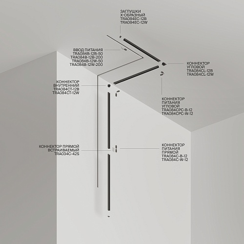 Характеристики Шинопровод встраиваемый Technical TRA084MP-12B