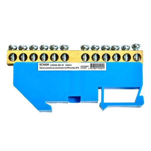 Характеристики Шина"N" на изоляторе STEKKER 6*9 на DIN-рейку 12 выводов, синий, LD555-69-12