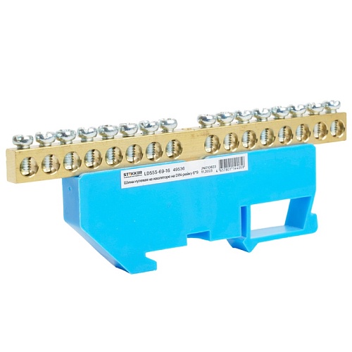 Характеристики Шина"N" на изоляторе STEKKER 6*9 на DIN-рейку 16 выводов, синий, LD555-69-16