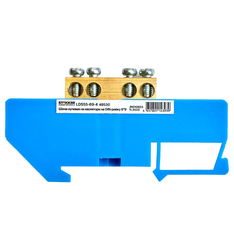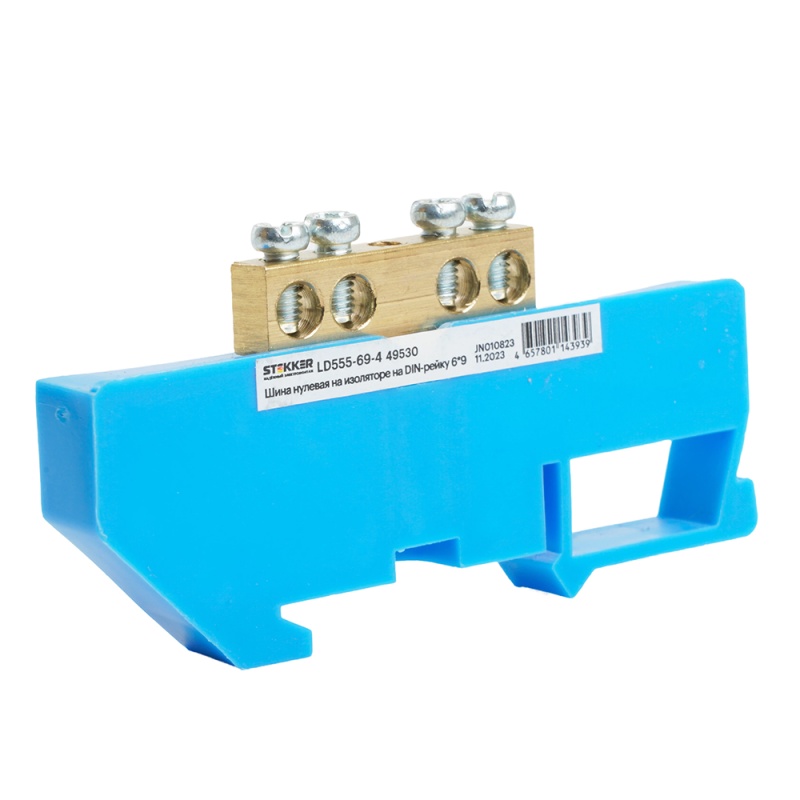 Характеристики Шина"N" на изоляторе STEKKER 6*9 на DIN-рейку 4 вывода, синий, LD555-69-4
