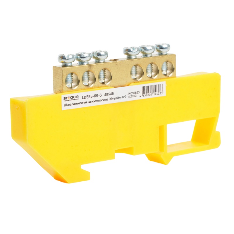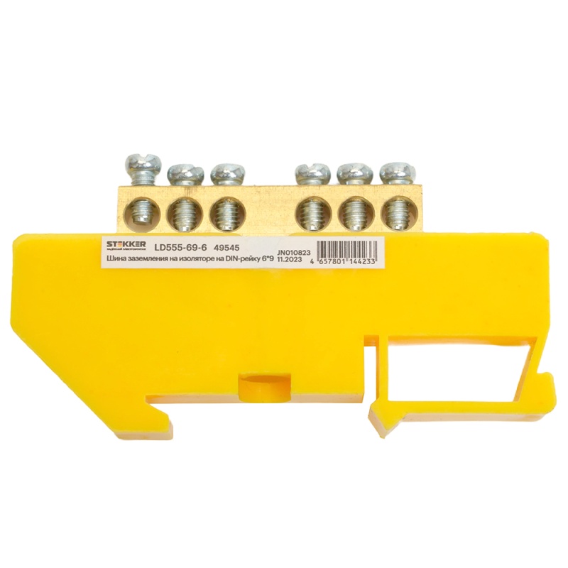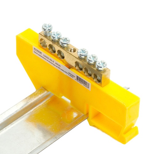 Шина "PE" на изоляторе 6*9 на DIN-рейку 6 выводов, желтый, LD555-69-6 49545