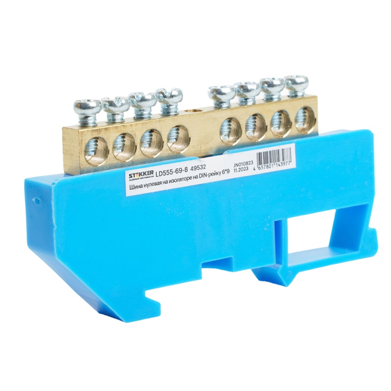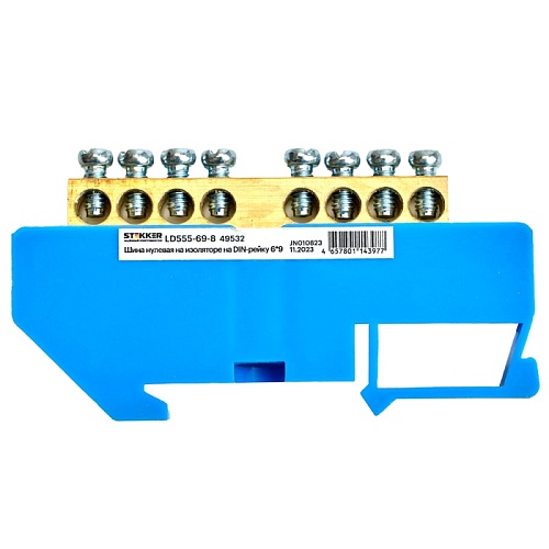 Характеристики Шина"N" на изоляторе STEKKER 6*9 на DIN-рейку 8 выводов, синий, LD555-69-8