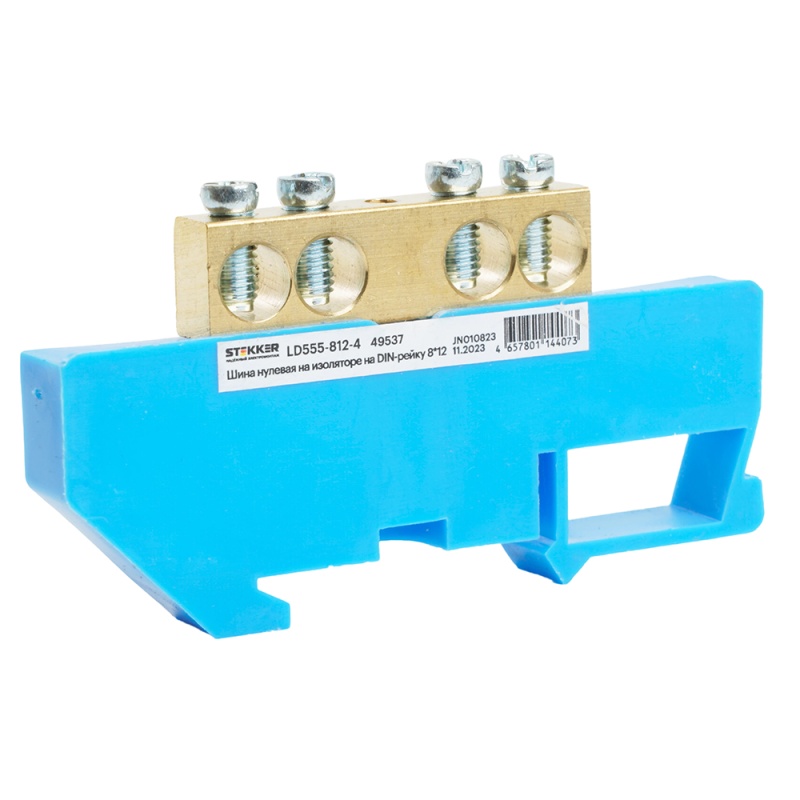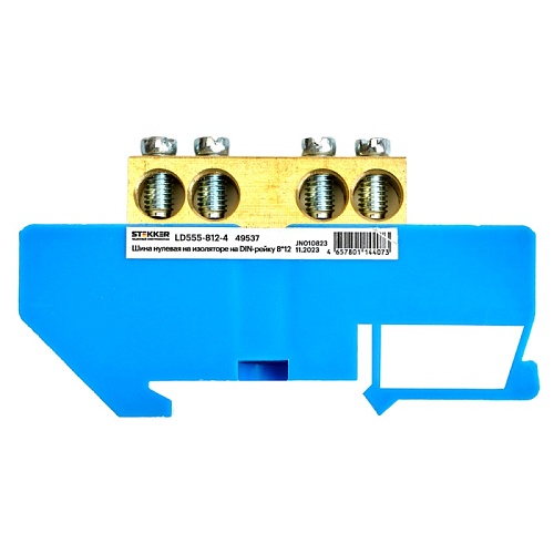 Характеристики Шина"N" на изоляторе STEKKER 8*12 на DIN-рейку 4 вывода, синий, LD555-812-4