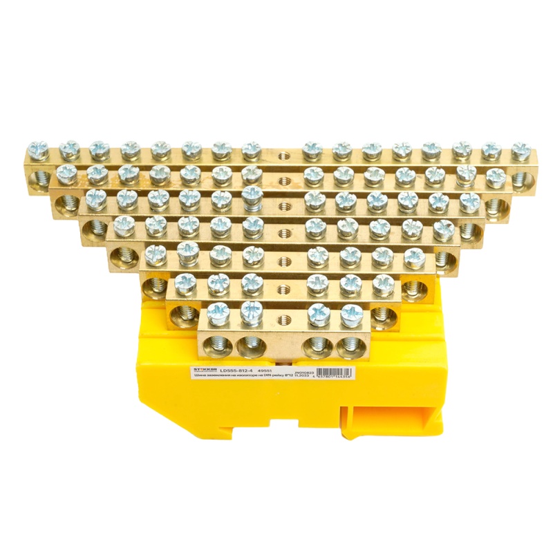 Характеристики Шина "PE" STEKKER на изоляторе 8*12 на DIN-рейку 8 выводов, желтый, LD555-812-8
