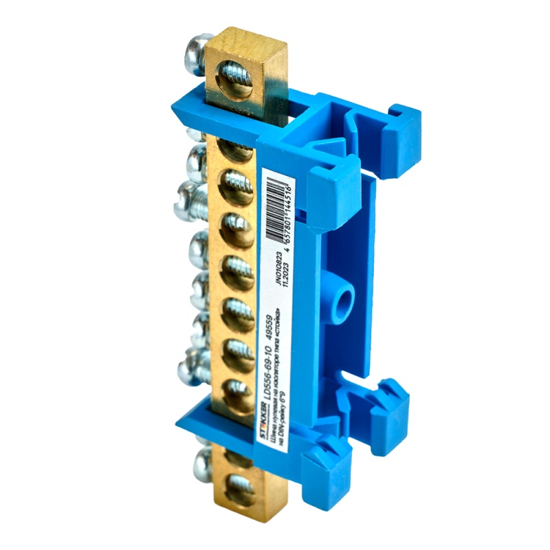 Шина "N" на изоляторе STEKKER 6*9 тип "стойка" на DIN-рейку 10 выводов, синий, LD556-69-10
