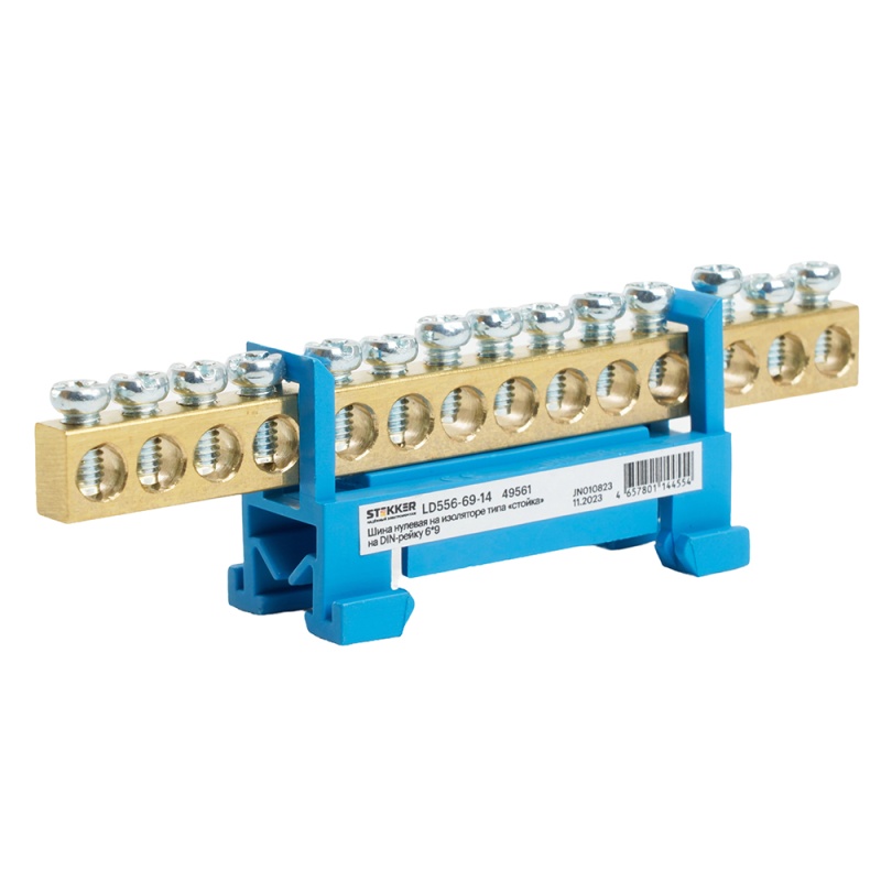 Отзывы о Шина "N" на изоляторе STEKKER 6*9 тип "стойка" на DIN-рейку 14 выводов, синий, LD556-69-14